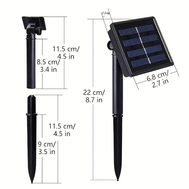 Number Of LED Beads: 20Light Color: Multicolor White Light Warm WhitePower Supply: Solar EnergyType: Lamp StringStyle: Creative Light StringFeatures: Christmas Wedding Decoration Waterproof Party Solar EnergyVoltage (V): Solar Power SupplyInitial Lumen (lm): 50Length: 5m/196.85inch